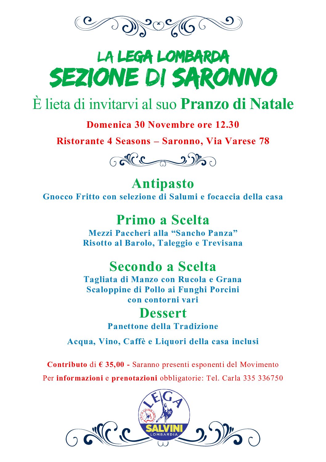 Per informazioni e prenotazioni obbligatorie: Tel. Carla 335 336750